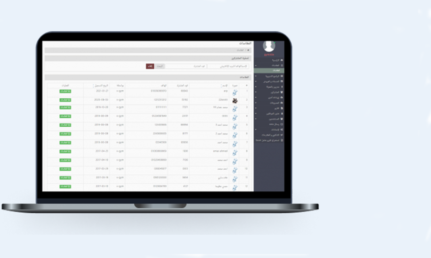 • ظهور كود خاص لكل مشترك بكجرد تسجيل اشتراكه في الجيم.