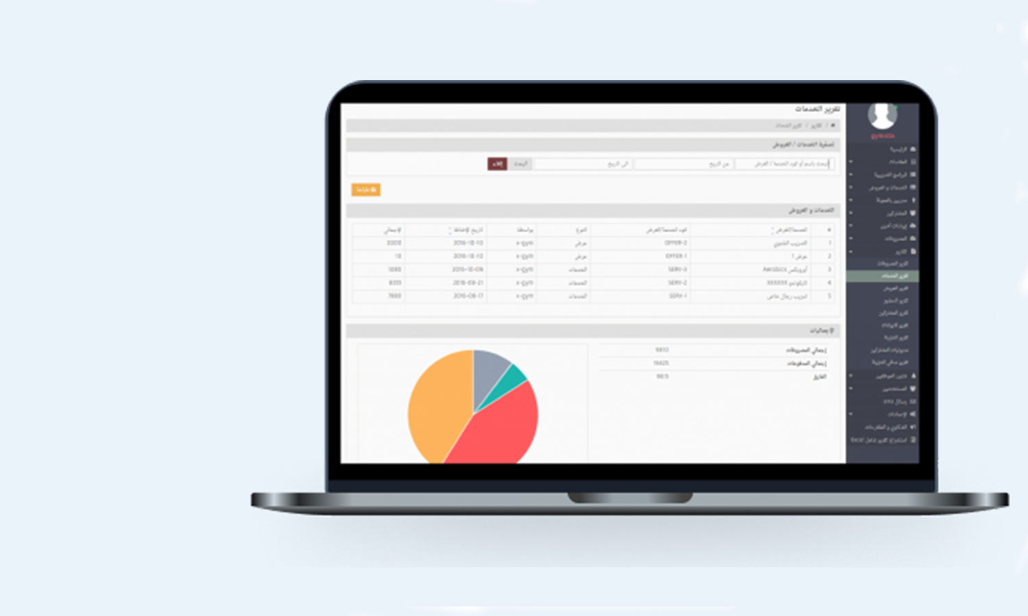 • إمكانية استخراج تقارير وإحصائيات لإيرادات كل خدمة من الخدمات.